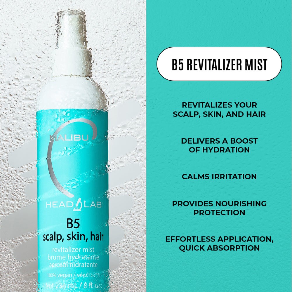 Hydrate scalp, skin and hair with a moisture-rich mist infused with provitamin B5 and nourishing allantoin. Malibu C B5 Scalp, Skin, Hair Revitaliser Mist is a leave-in conditioner that combats environmental stressors and promotes softer, renewed skin and hair. An all-in-one solution powered by provitamin B5 and allantoin, delivering a surge of hydration, a boost of stimulation to the scalp and a hit of strengthening to hair strands for beautiful, balanced results. 100% vegan.