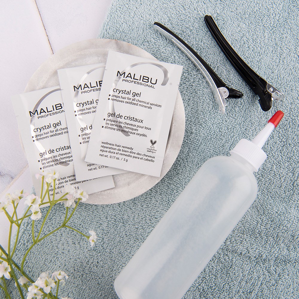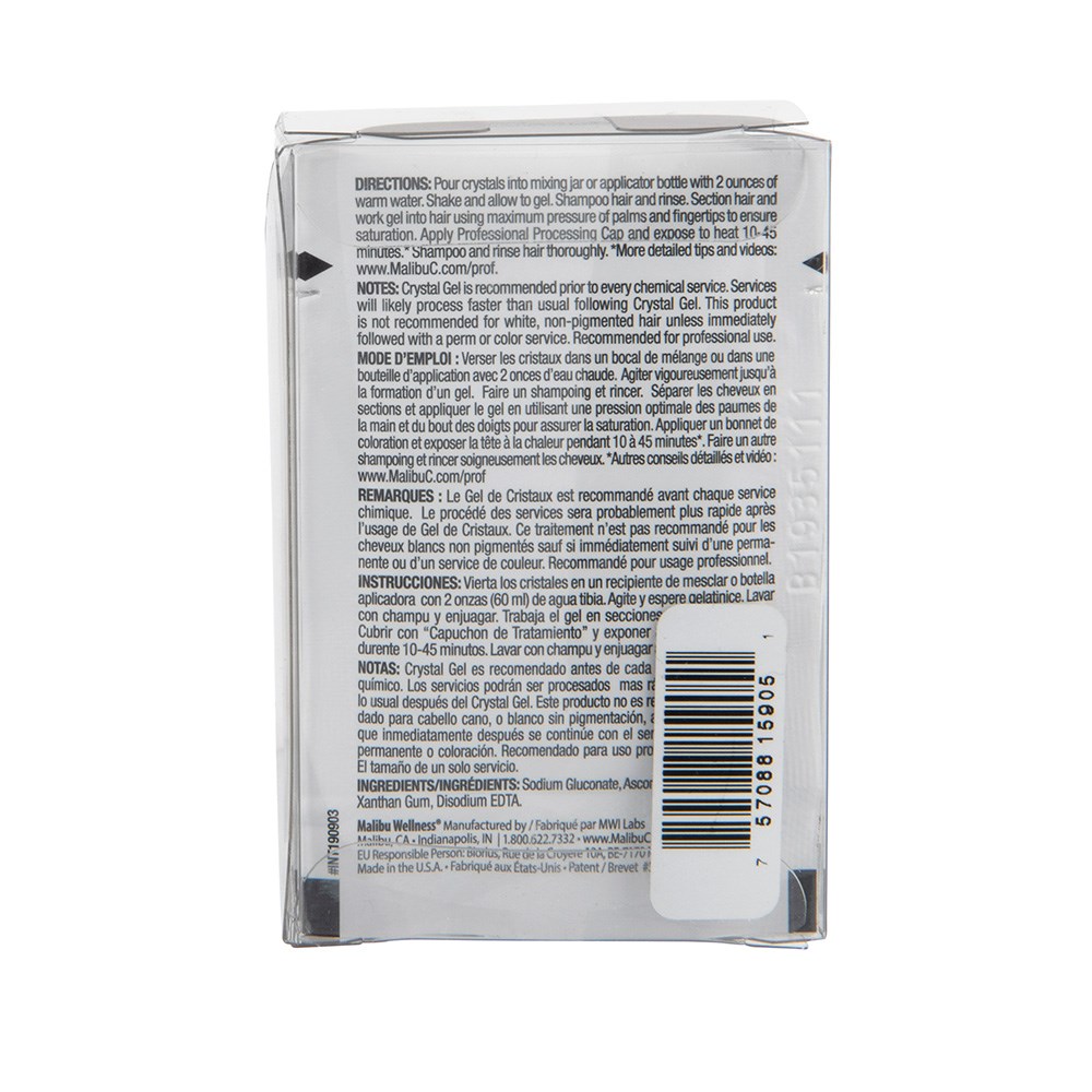 Malibu C Crystal Gel Natural Wellness Hair Treatment preps hair for all chemical services, while removing build-up and discolouration. Immediately rid hair and scalp of damaging deposits! Instantly remove brassiness, leaving a clean canvas for successful colour results. Formulated with a patented, 100% vegan, antioxidant, vitamin-rich complex. Simply mix crystals with warm to discover the benefits of Malibu treatments.
