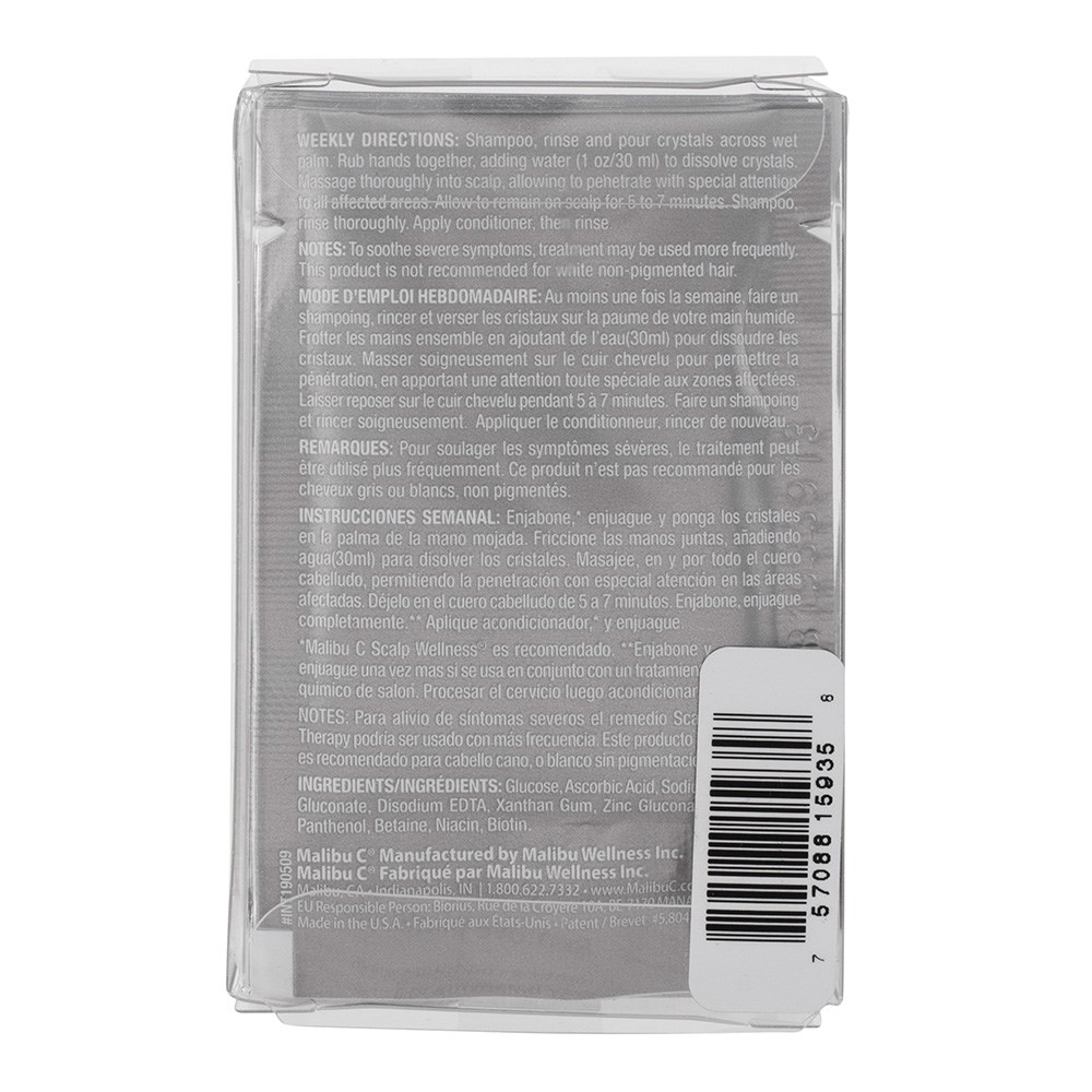The first ever 100% vegan flake fighter. Malibu C Scalp Therapy Wellness Hair Treatment instantly sooths itching and irritation. Infused with a B and C vitamin complex, including biotin, to improve the appearance of the scalp. Malibu C Scalp Therapy Wellness Hair Treatment removes mineral build up which can be the cause of scalp irritation.