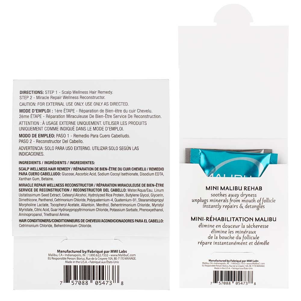 Instantly soothe itching and irritation. Malibu C Mini Malibu Rehab Scalp Treatment is a freshly activated antioxidant complex formulated to infuse a one-of-a-kind blend of soothing botanicals and essential oils, while repairing hair from within. This set of 2 sachets includes Malibu C Scalp Treatment and Miracle Repair Reconstructor. Cruelty-free, vegan and made in the USA. Formulated without sulphates, surfactants, gluten and paraben.