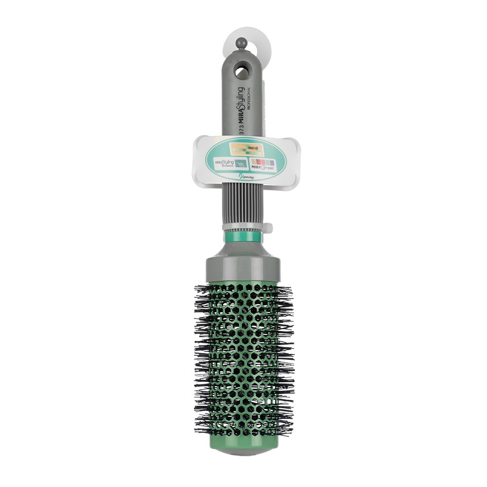 This new generation ceramic coated hot tube brush from Mira diffuses heat from a hair dryer rapidly and evenly, shortening drying time. Ceramic distributes heat consistently, without damaged hot spots. The soft cushion grip and light weight of Mira Ceramic Hot Thermal Hot Tube Brushes make them comfortable to use while offering superior control. Ideal for smoothing, volume and movement. Large.