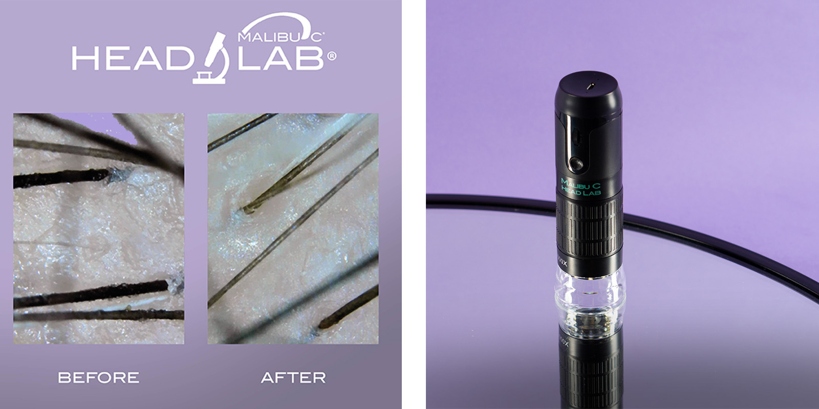 Identify and resolve scalp issues while enabling clients to visualise these concerns through dermoscopic imagery in the Digital Scope tool. It's an ideal solution for hairdressers and clients seeking a modern approach to scalp problems. The compact Digital Scope device fits comfortably in the hand and offers powerful magnification, a bright light for exceptional viewing, WiFi connectivity, and photo and video capabilities. This technology allows hair professionals to showcase real-time evidence of the before-and-aftereffects of their Malibu C treatments.