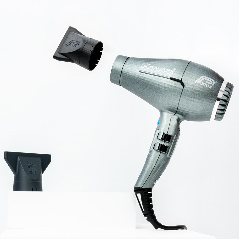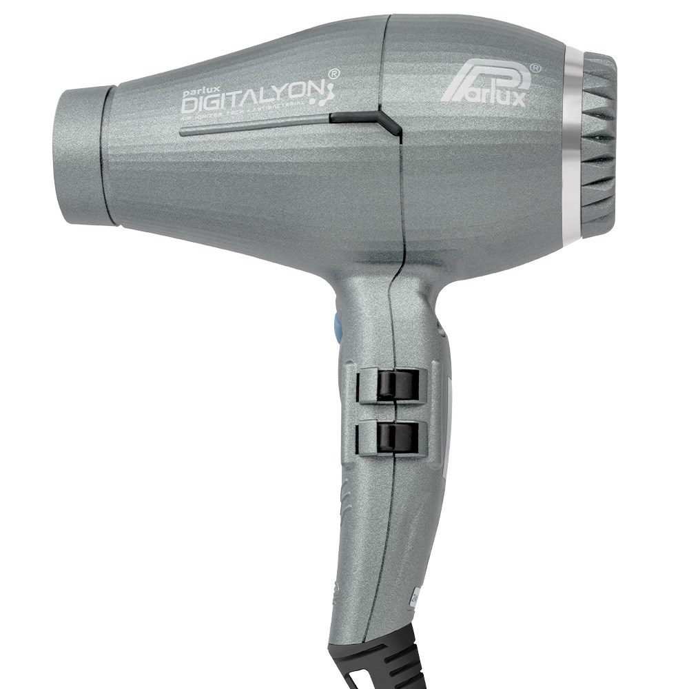 All that glitters is Parlux. Parlux DigitAlyon Hair Dryer in Glitter Grey is more powerful, more lightweight and more reliable. The pinnacle of Italian glamour, this hair dryer is equipped with an ultra-long life digital motor delivering an airflow of 88m3/h for all-day salon styling. New, wave heating element with variable geometry increases power to an astounding 2400 watts. Air Ionizer Tech ionic and ceramic technology softens hair and imbues shine while speeding up drying time. Special antibacterial paint creates an unfavourable surface for proliferation of microorganisms. Exceptionally lightweight, ergonomic and perfectly balanced.