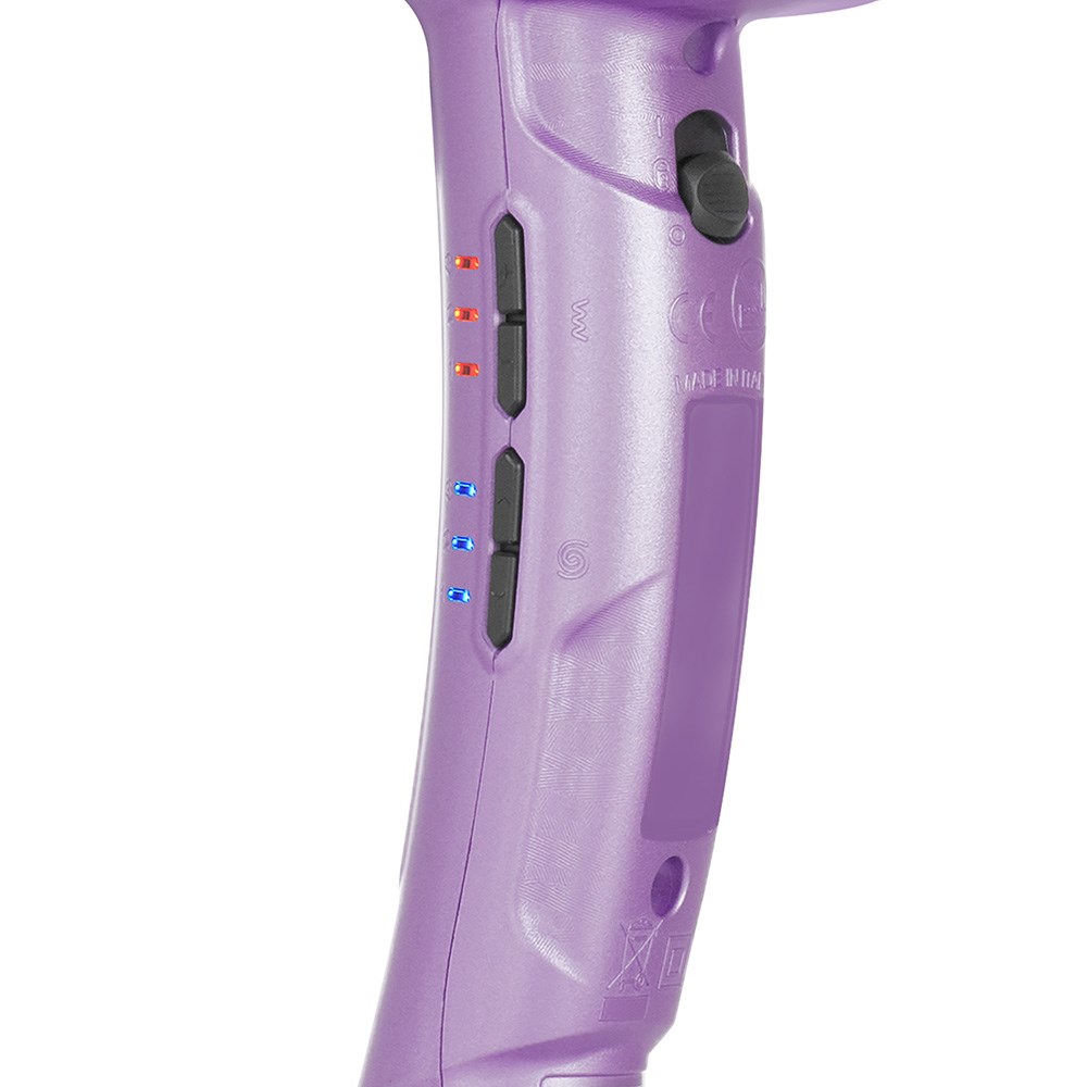 Express your talent by exploring new stylistic universes. Parlux Ethos Hair Dryer Lilac embodies digital excellence for styling without boundaries. Classic design meets digital innovation, delivering astounding performance, durability, lightness and power. Improve and customise your blow-drying experience. Professional digital motor with 2,300 watts and 88m³/h airflow for flawlessly fast drying. Nine combinations of temperature and speed. Air Ionizer Tech ionic technology for superbly silky results. Anti-heating front body, lightweight, perfectly balanced with an ergonomic handle. Patented special twisting cable offers unprecedented freedom of movement, allowing the cable to freely rotate 360°. Designed with exclusive texture and antibacterial paint. Two nozzles, including new slim, straightener effect nozzle.