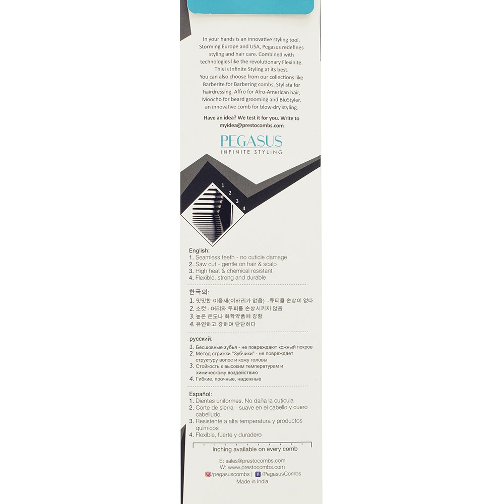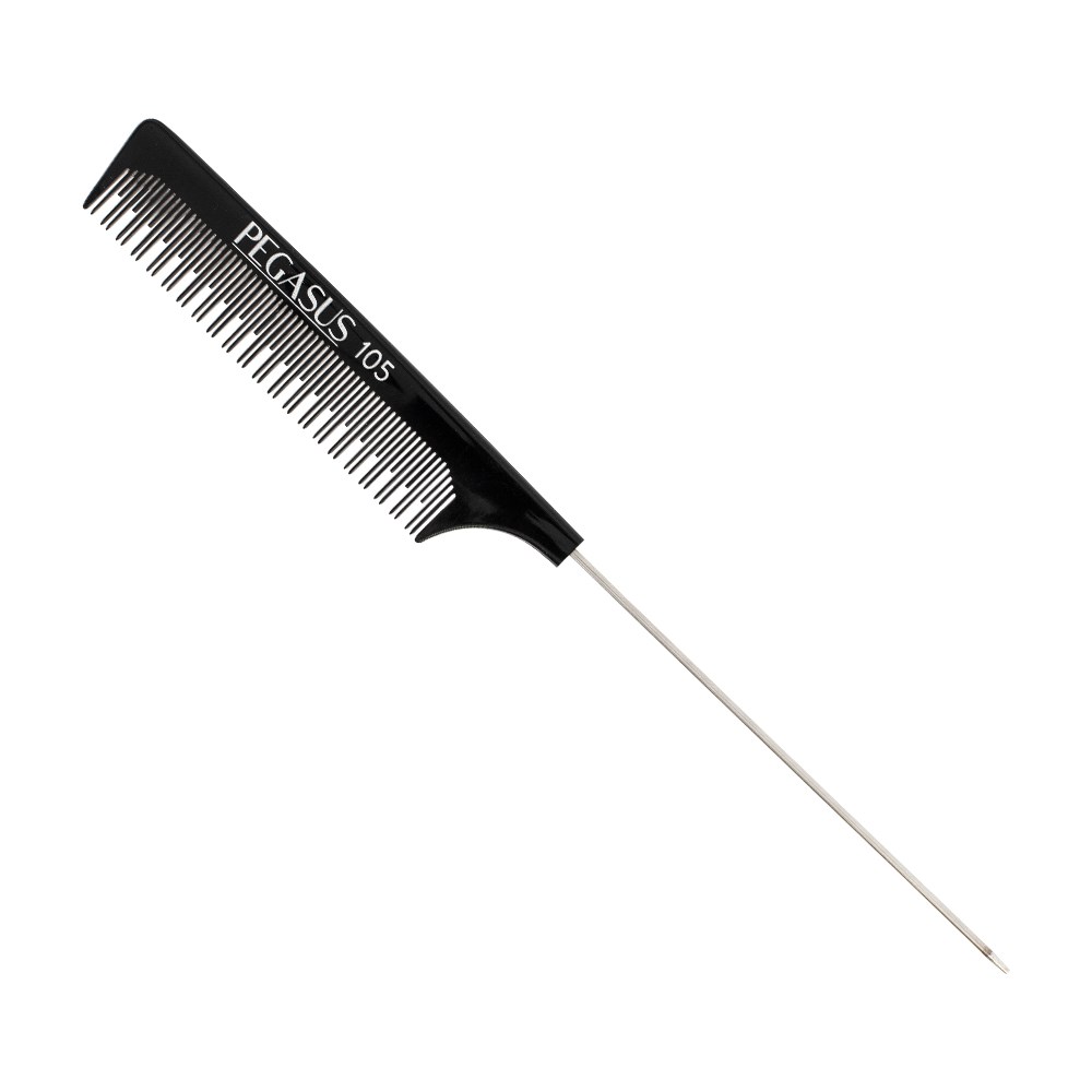 Storming Europe and the USA, Pegasus combs redefine styling. Combined with revolutionary Flexinite technology, Pegasus 105 Teasing Tail Comb Metal is styling at its best. Flexinite Smart Comb Technology creates seamless teeth which are sensitive to changing temperatures, mimicking hair and flexibly moving in response to heat and chemicals. The result? No damage to hair. Pegasus 105 Teasing Tail Comb features different teeth heights for volume and lift, plus a metal tail for sectioning hair. Always gentle on hair.