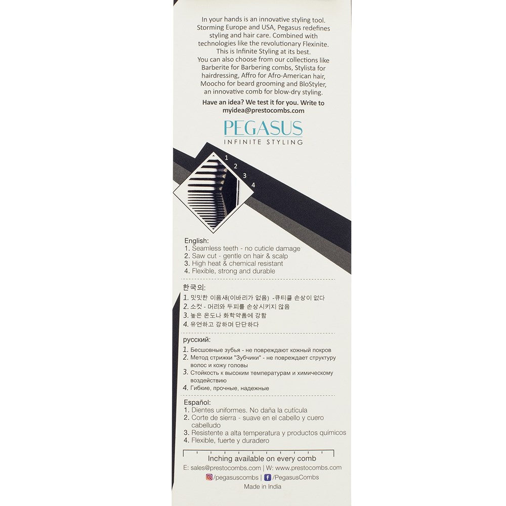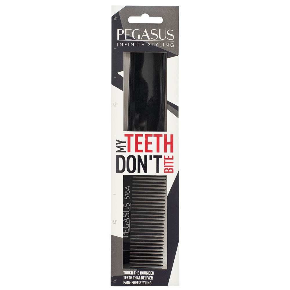 Storming Europe and the USA, Pegasus combs redefine styling. Combined with revolutionary Flexinite technology, Pegasus 516A Barber Comb Flattopper Small is styling at its best. Flexinite Smart Comb Technology creates seamless teeth which are sensitive to changing temperatures, mimicking hair and flexibly moving in response to heat and chemicals. The result? No damage to hair. Pegasus 516A Barber Comb Flattopper Small is perfect for creating flat tops, tapering and clipper over comb techniques.