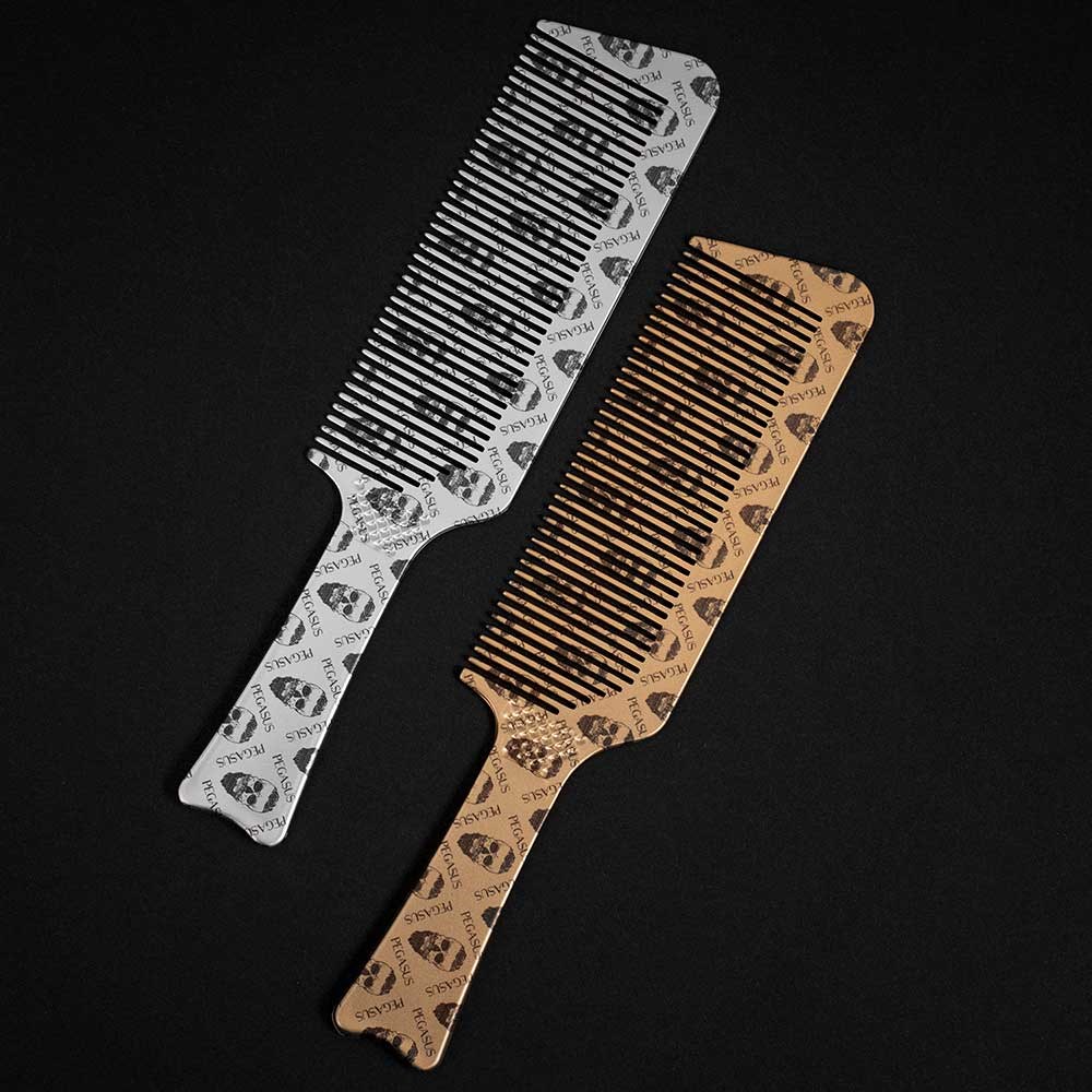 The combs which redefined styling. Pegasus Skulleto 514A Flattopper Barber Comb in Gold is styling at its coolest and smartest. With signature skull print in gold, this comb features advanced Flexinite Smart Comb Technology for perfectly rounded, seamless teeth which won't ever damage hair. Ideal for creating flat tops, tapering and clipper over comb techniques. High heat and chemical resistant.