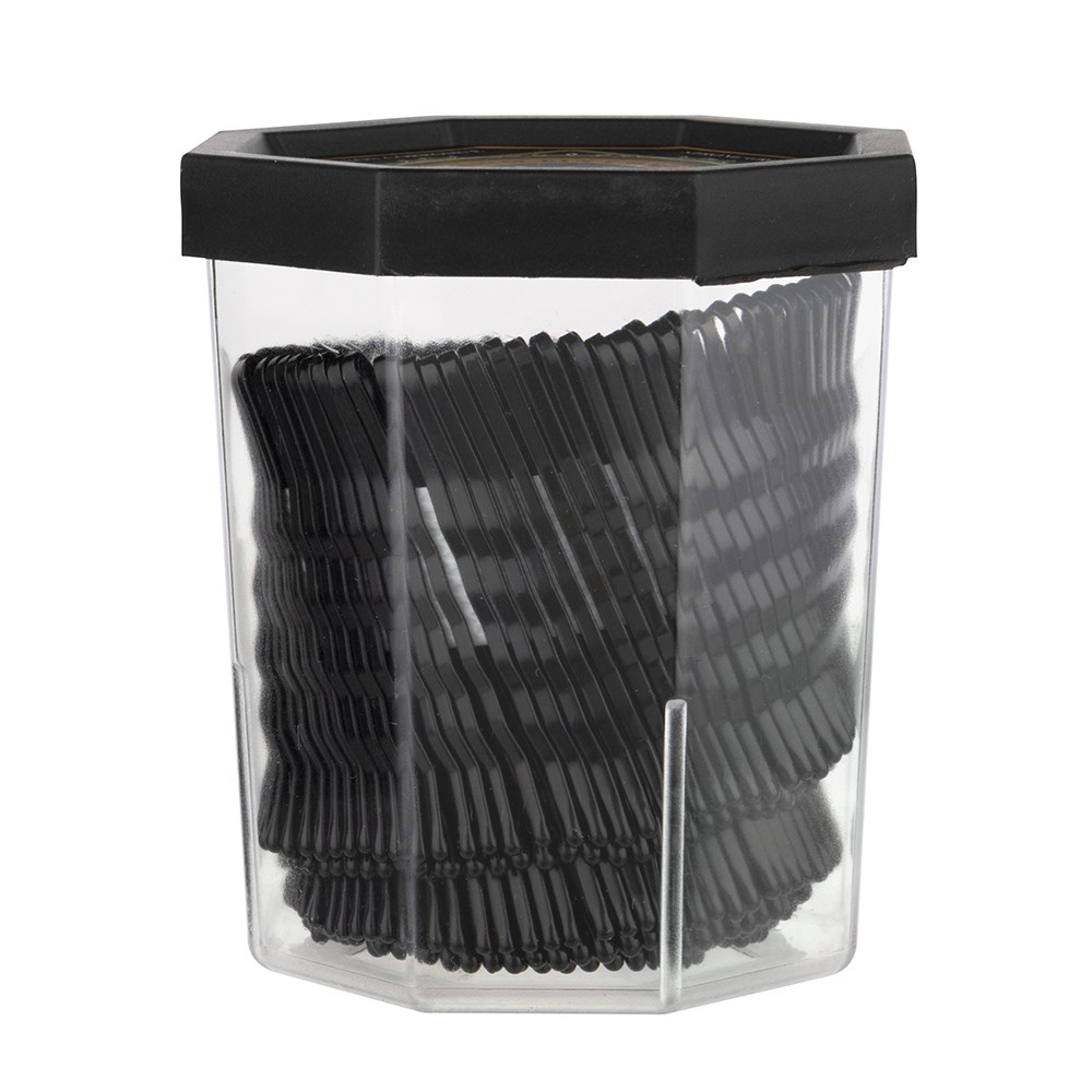 Premium Pin Company 999 Bobby Pins 2” Black 250g are expertly designed to meet the demands of hairdressing professionals and enthusiasts alike. With an extra-strength design, they securely hold your hairstyle or updo in place, ensuring a flawless look that lasts. The long-lasting spring, firm secure grip, durable tips, and rust-resistant materials make these bobby pins a reliable choice for your hairstyling needs. Convenience is key, which is why our bobby pins are housed in an easy-to-use see-through dispenser. No more fumbling through drawers struggling to find the right pin. Our dispenser keeps your pins organised and within reach, making hairstyling effortless. Choose Premium Pin Company 999 for superior quality and performance.