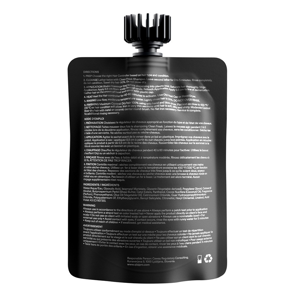Qiqi is more than just permanent straightening, styling and retexturising. Qiqi is hair control. Dive into the world of transformative results with non-alkaline Qiqi Thick and Coarse Hair Controller. Reshape and transform thick and coarse, including coloured and chemically-treated, hair. This professional treatment grants unparalleled control, unleashing a realm of possibilities for manageability, styling and transformation. Hair is left relaxed, enhanced or straightened with long-lasting innovation which controls and transforms any texture. A revolutionary non-alkaline based formula, this salon treatment is a carefully curated blend of glyoxylic acid, shea butter, coconut oil and more which is kinder, gentler to hair.