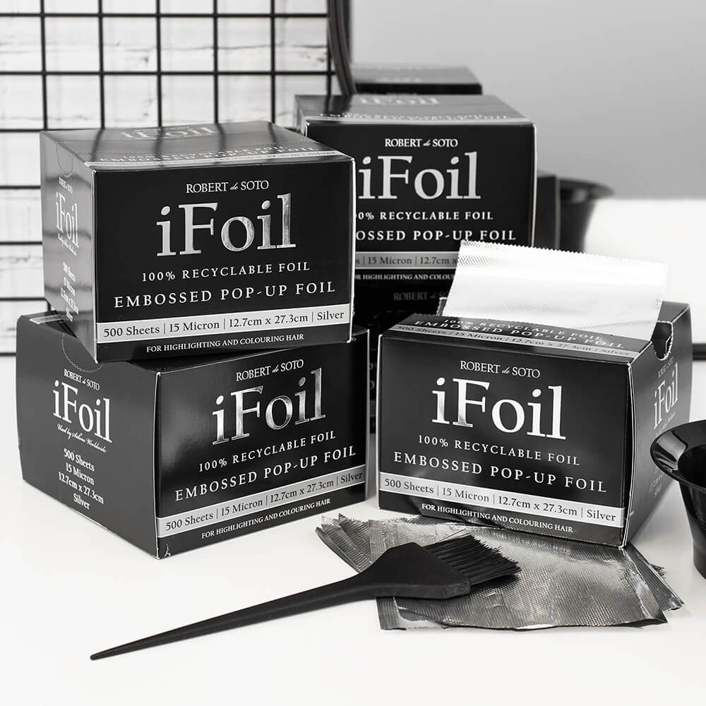 Super quick and easy to use, Robert de Soto iFoil Embossed Pop Up Green is your ultimate time-saving product. The convenient dispenser means no cutting, no sticking, no hassle! 100% recyclable aluminium foil is embossed to save time by preventing slipping and assisting with a quicker processing time. Maximum grip and flexibility for colouring with confidence. Designed by and for discerning stylists.
