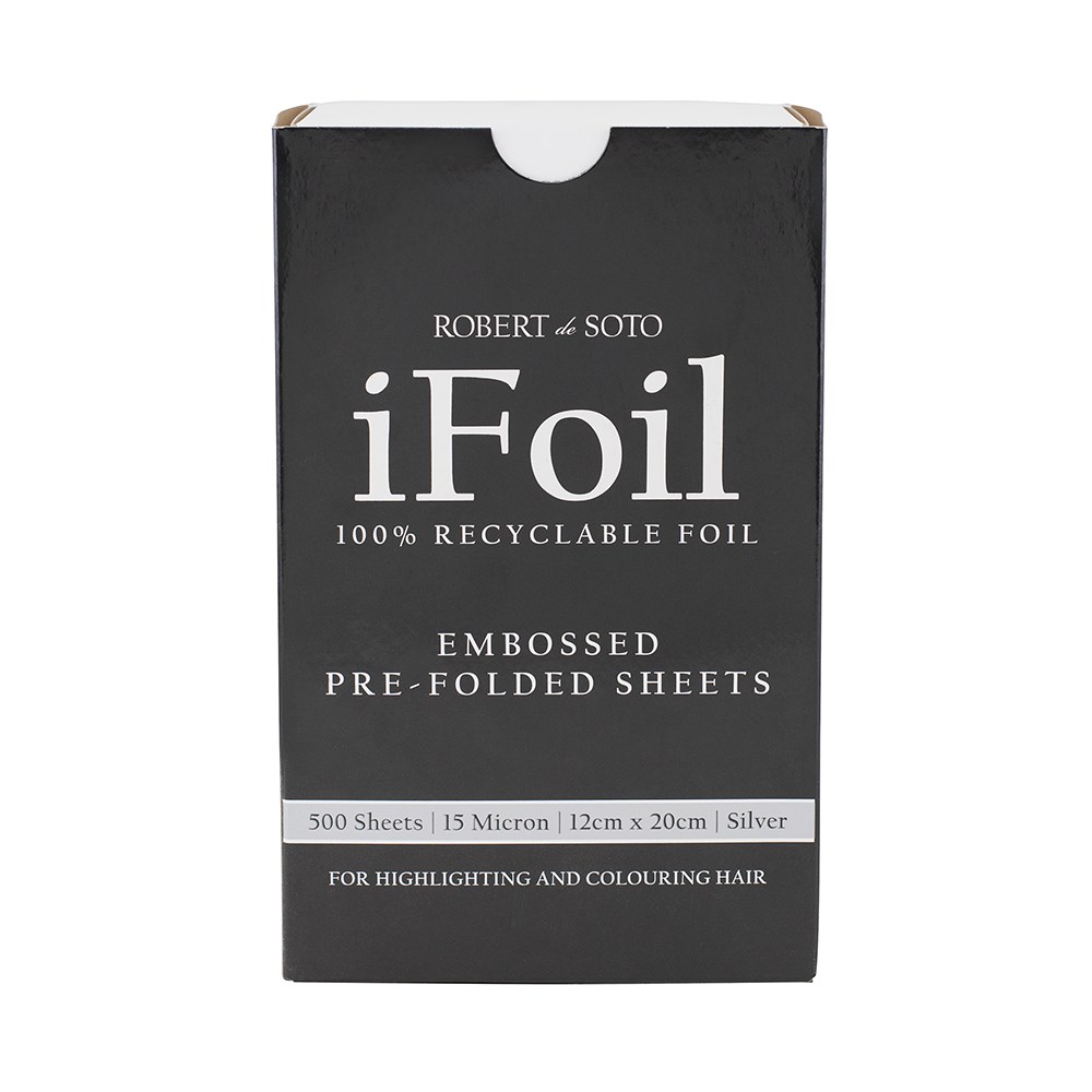 The textured surface of Robert de Soto’s Embossed Foil provides extra grip and added control. Hair will never slip during highlighting or colouring on the amazing embossed surface. Easy fold, 15 micron pre-cut sheets.
