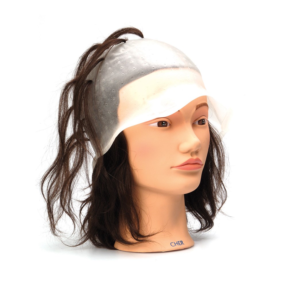 This reusable cap is ideal for salon or home use when highlighting or low lightening hair. Includes a steel hook to pull hair through easily.
