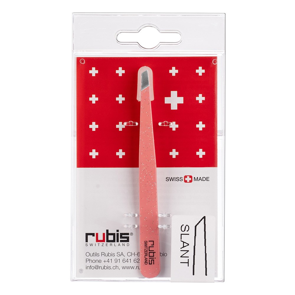 The very finest Swiss precision. Renowned across the beauty community, each Rubis Slant Tweezer Glitter Pink is individually hand-finished under magnification, making it an impeccable beauty tool for perfect plucking. Add a dose of sparkle with a pink glitter finish. Manufactured in Switzerland, each tweezer is created from the finest surgical steel and tested for weight, balance and performance to ensure quality. Ergonomically correct form for optimal effectiveness and ease of handling.