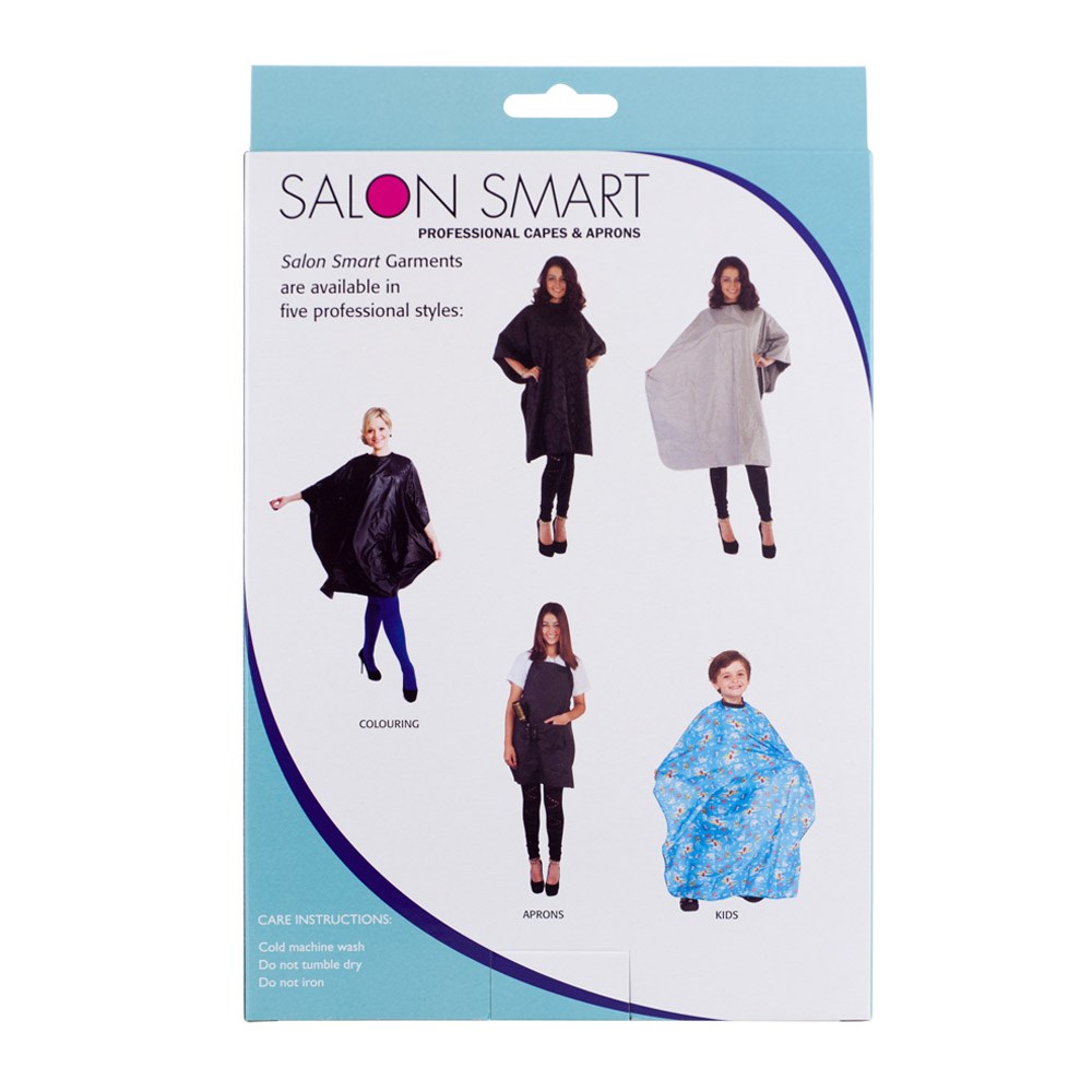 Salon Smart’s professional, all-purpose cape is made from 100% water resistant polyester for maximum protection. Adjustable Velcro closures ensure a comfortable fit. This lightweight cape is fully reversible with one black side and one silver side. Ideal cape for use during shampooing, cutting and colouring to protect clients.