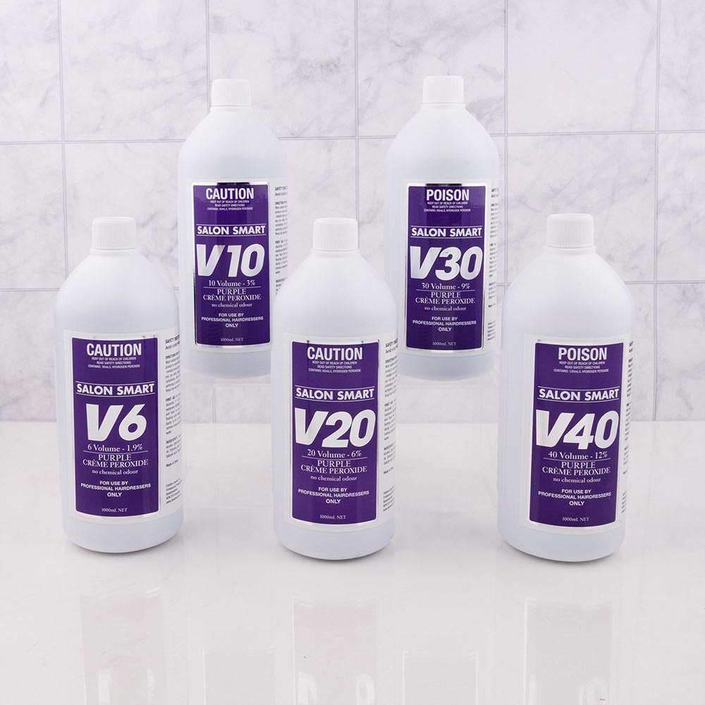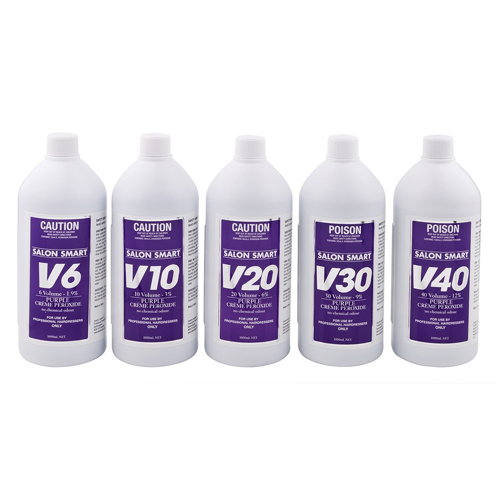 No more chemical odours with Salon Smart! This Purple Crème Hair Peroxide features a dark cherry/pomegranate fragrance. Salon Smart Purple Crème Hydrogen Peroxide is suitable for use with all hair shades of oxidised colour. Purple Crème Hair Peroxide can also assist with additional toning when used for bleaching hair, highlift colour and hair toners. High performance hair peroxide with a rich, cream base for even distribution and fast application.