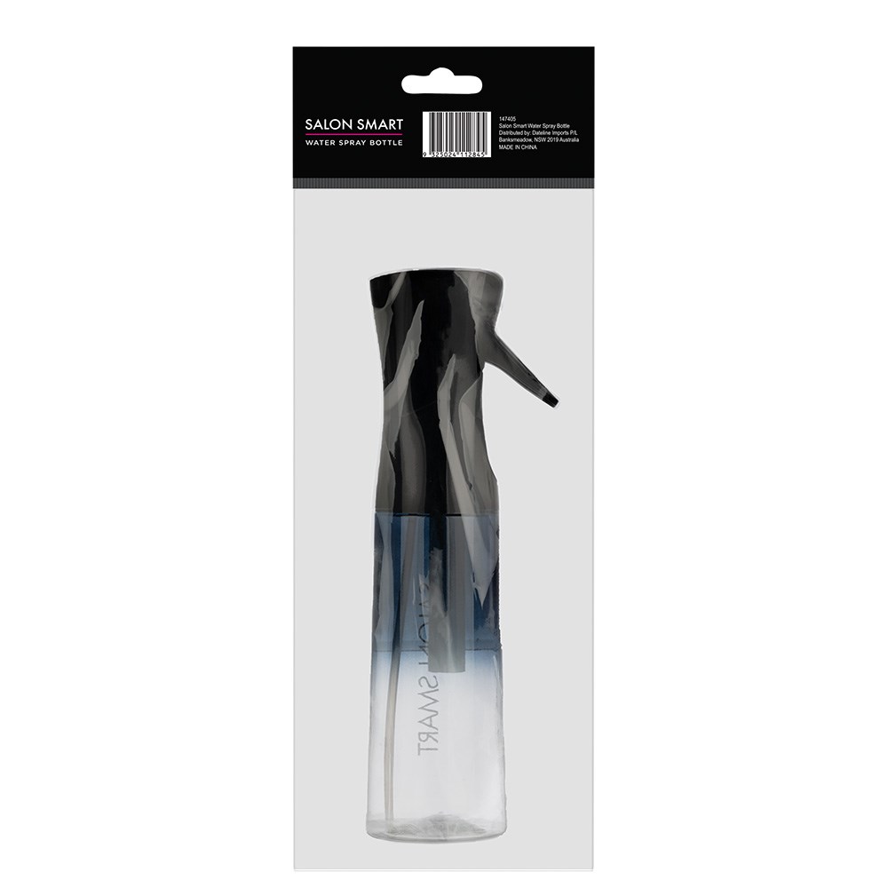Salon Smart Water Spray Bottle 300ml is the smart choice. In chic ombre black with Salon Smart logo, this sleek bottle fits perfectly in your hand. The adjustable spray nozzle is designed to maximise efficiency and accuracy. With a 300ml capacity, this spray is ready when you are.