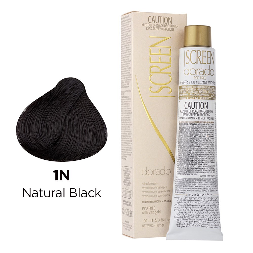 Precious cream colour with unique tonal richness. Developed in a wide range of colours, Screen Dorado Hair Colour Cream 1N Natural Black is the culmination of advanced technology, research and continuous testing. This hair colouring cream is PPD-free and enriched with 24K gold for results which are truly incredible. Microparticles of gold reflect light, multiplying the brilliance of colour. Colour is intensely rich and exceptionally long-lasting. Maximum grey coverage and balanced, uniform results. Elite colour created in Italy.