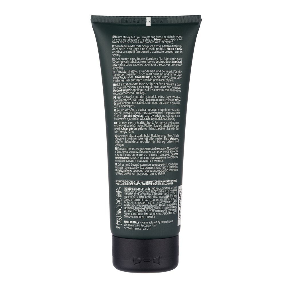 Screen for Man, Italian-made hair and skin care totally dedicated to men’s daily needs. Screen for Man Sculpting Gel is an extra strong hold gel which sculpts and fixes hairstyles in place. Characterised by quality ingredients and a powerful formulation, this sophisticated gel is ideal for all hair types. Enriched with ginger and ginseng extracts, the paraben-free, colourant-free formula is energising and stimulating. Exotic fragrance with masculine base notes.