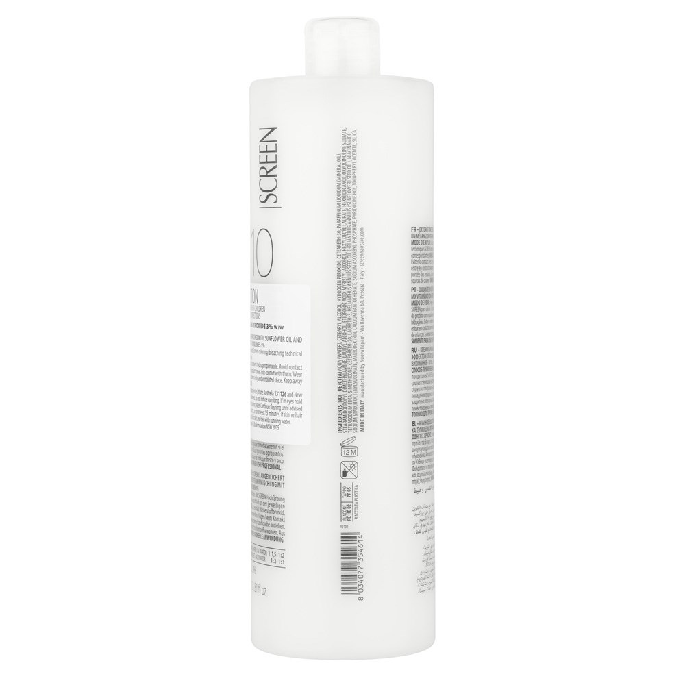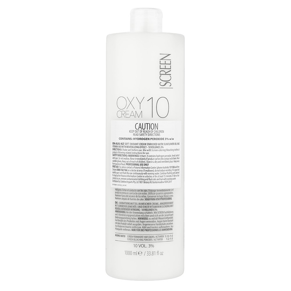 Screen Oxy Cream 10 Volume Activator is a soft oxidant cream enriched with sunflower oil and precious antioxidants. Nourishing, moisturising and protective, this special creamy formula is soothing and gives maximum protection to skin during treatments. Easy to mix texture ensures the stability of colour. Mix with Screen’s elite colouring and bleaching range for outstandingly beautiful results while maintaining hair’s integrity.