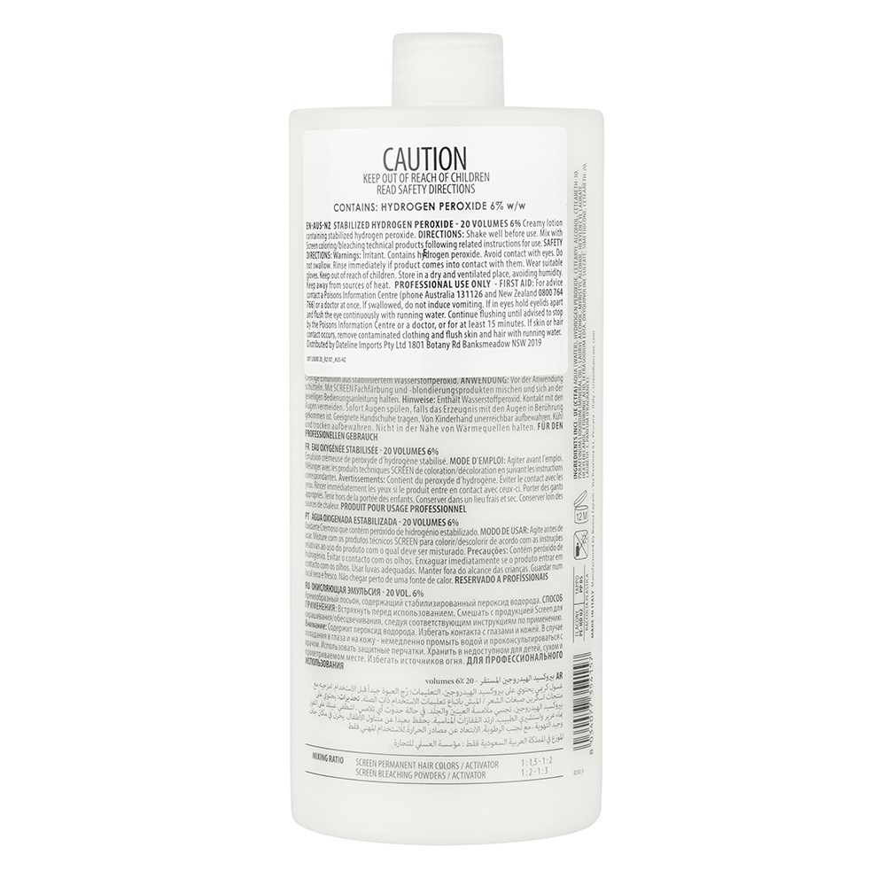 For the most even and consistent results during the colouring and bleaching process, choose Screen Oxy Liquid 20 Volume Developer. Made in Italy to the highest standards, this oxidant emulsion contains 6% stabilised hydrogen peroxide . Designed to be mixed with Screen’s elite colouring and bleaching products. Screen has swept across 68 countries, championed by hair artists who love the advanced ingredients and gorgeous results.