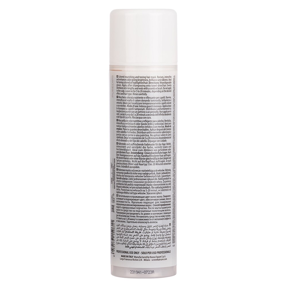 The new hair colour masks. Versatile. Vibrant. Creative. Screen Puredips Colour Recharger Hair Mask Beige removes the limits on your creativity. Directly intermixable shades and a desaturating neutral shade which unveil infinite possibilities from intense boldness to subtle depth. 100% vegan, these nourishing masks create new shades on natural hair, maintain vibrance between colouring sessions or tone coloured and highlighted hair with an easy, fast, non-committal and temporary colouring service. Enhanced with Colourist Complex and magnolia glycolic extract for incredible vitality and shine.