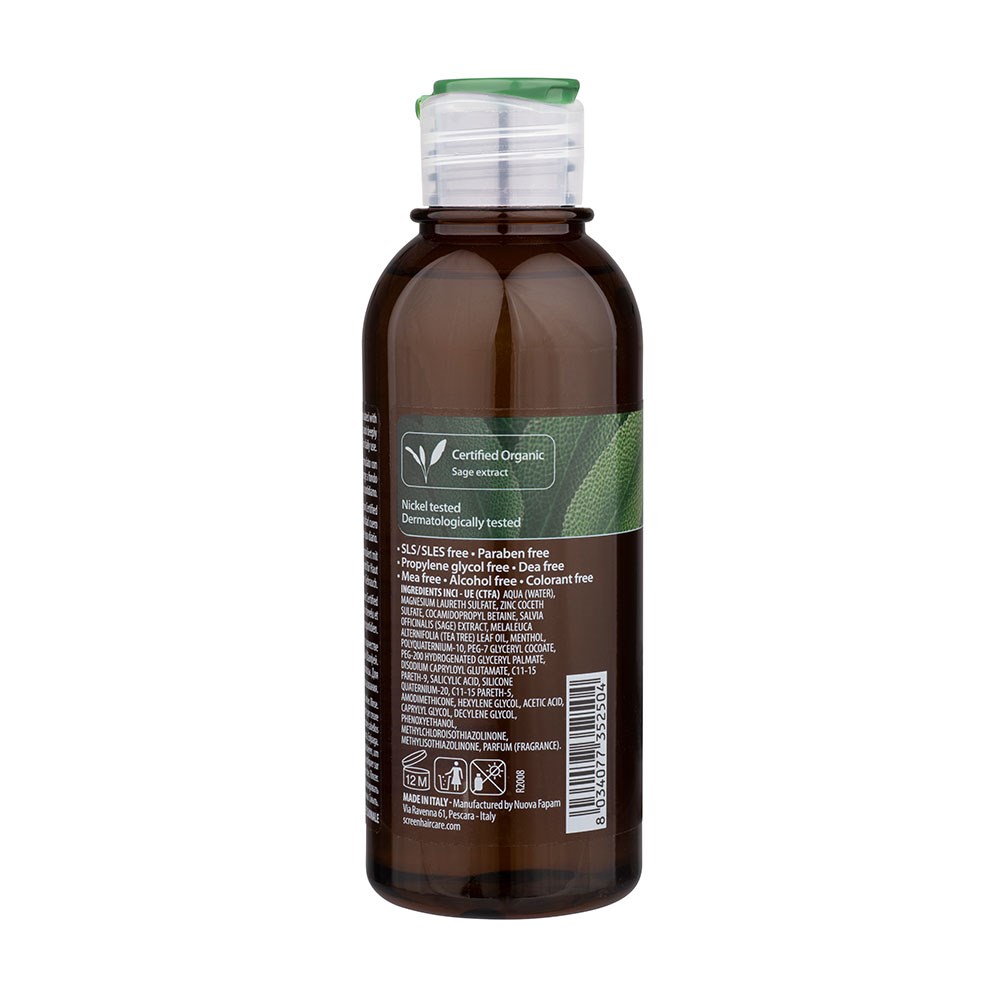 Organic ingredients for the maximum expression of purity. Screen Purest Purify Renewing Shampoo is clean beauty made in Italy. Formulated with certified organic sage extract, this purifying shampoo gently nourishes and deeply cleanses scalp and hair. Sage extract is known for its purifying power, as well as its refreshing scent. SLS-free and paraben-free, this renewing shampoo is suitable for daily use. Naturally derived, non-genetically modified ingredients in a colourant-free formula for vitality and shine renewal.
