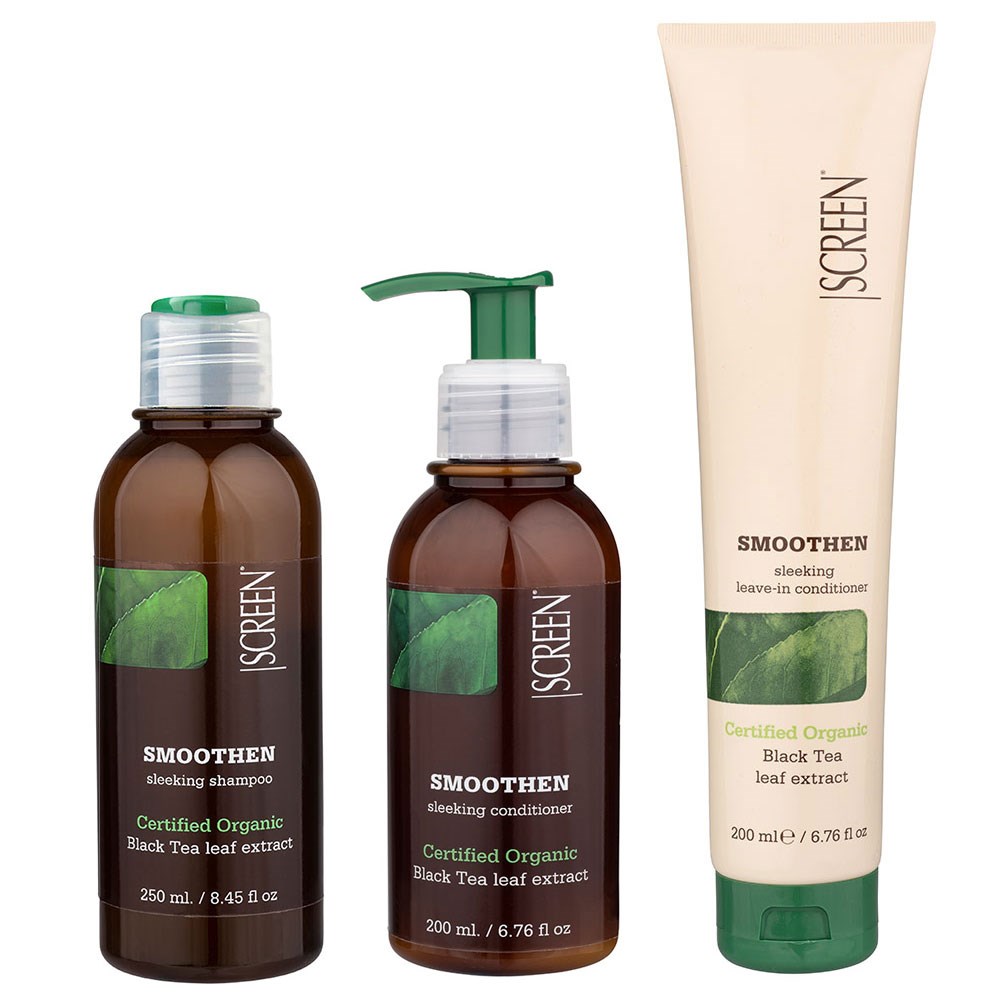 Organic ingredients for the maximum expression of purity. Screen Purest Smoothen Sleeking Leave-In Conditioner is clean beauty made in Italy. Formulated with certified organic black tea leaf extract, this leave-in conditioner relaxes frizzy hair for maximum softness and manageability. Black tea leaf is known for its restructuring and moisturising abilities. SLS-free and paraben-free, this smoothing conditioner is suitable for daily use. Naturally derived, non-genetically modified ingredients in a colourant-free formula for smoothness and silkiness.