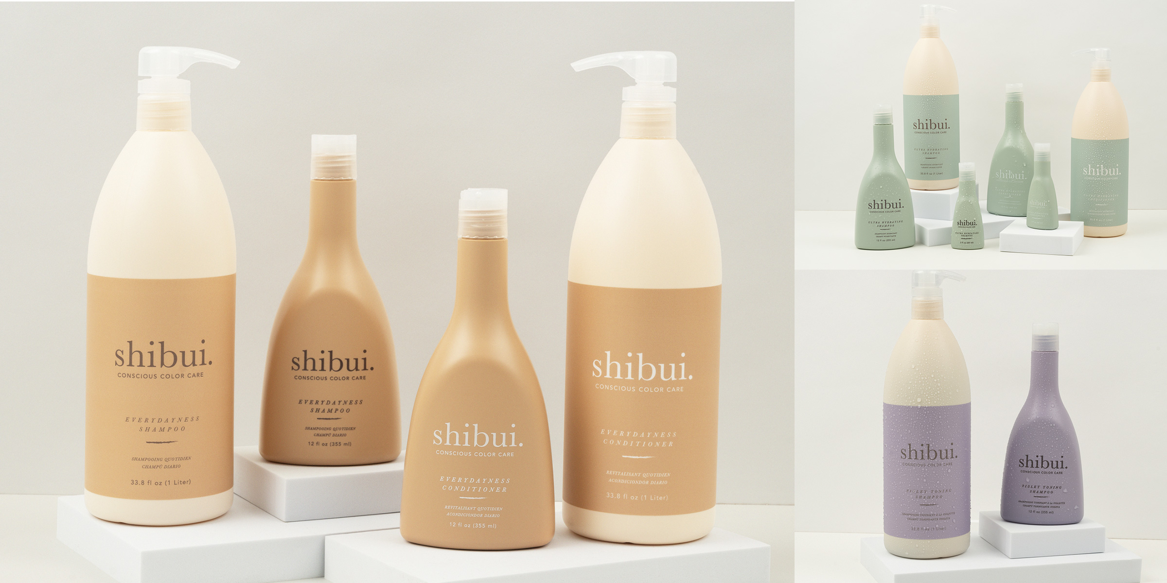 Shibui’s product ranges follow on from their ethos with a comprehensive line-up of extensive technology. In care, the Everydayness range is made for frequent use, with a gentle Shampoo and Conditioner imbued with Rose Water, Saké, Peach Kernel Oil and Babassu Oil, as well as a floral cherry blossom scent, to cleanse, soften and add shine to fine and medium hair. The Ultra-Hydrating duo is made to nourish the scalp and preserve colour vibrancy, where the Shampoo and Conditioner offer Camellia Oil, Lemongrass Oil, Hyaluronic Acid and Shea Butter, as well as a floral scent, for moisture and softness. A violet toning shampoo, comprised of Acai Oil and Hibiscus Flower Extract, is made with purple pigments to eliminate brassiness.