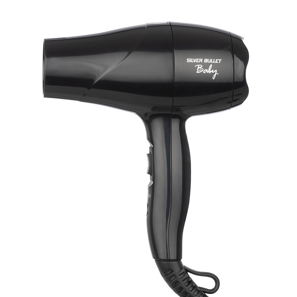 Silver Bullet Baby Travel Hair Dryer is a teeny tiny hair dryer with almighty power. This incredibly compact, light and travel-friendly hair dryer has a powerful airflow and 2 speed/heat settings for every hair type. Dual voltage for worldwide use, the Silver Bullet Baby Travel Hair Dryer is a styling superstar for on the go.