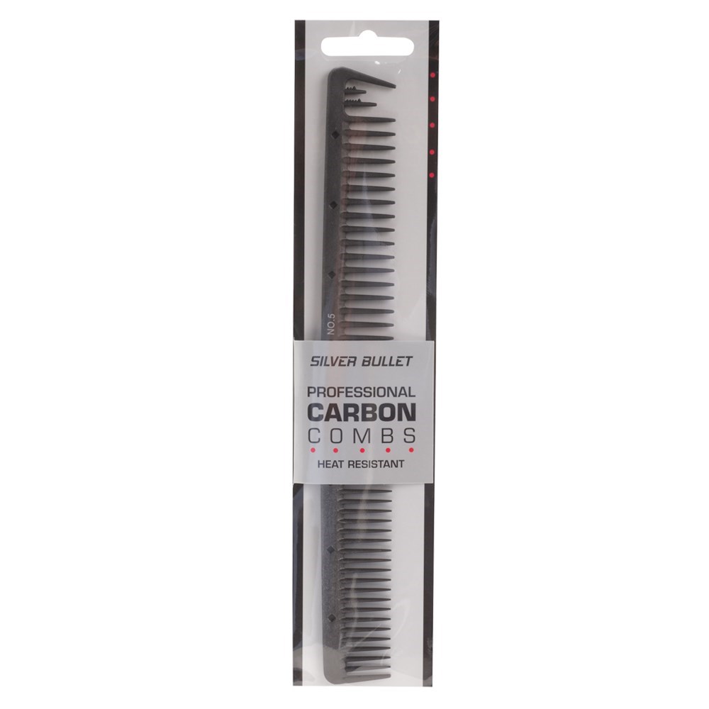 Don’t battle with flimsy, non professional hair combs. Get the super strong yet lightweight Silver Bullet Professional Carbon Hair Combs, made from carbon fibre and nylon. Silver Bullet Carbon Wide Teeth. Barber Hair Cutting Comb is ideal for detangling and cutting hair.