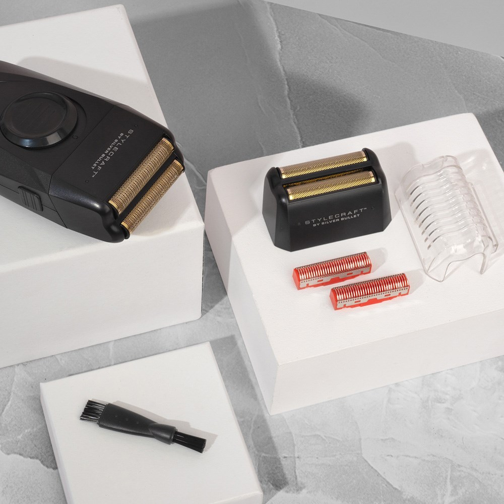 Replacement foil head for the StyleCraft by Silver Bullet The Boss Shaver. With two gold titanium foils, this replacement head is smart contouring and hypoallergenic. Super-close, ultra-thin for the best possible, uniform shave. Easy to replace.