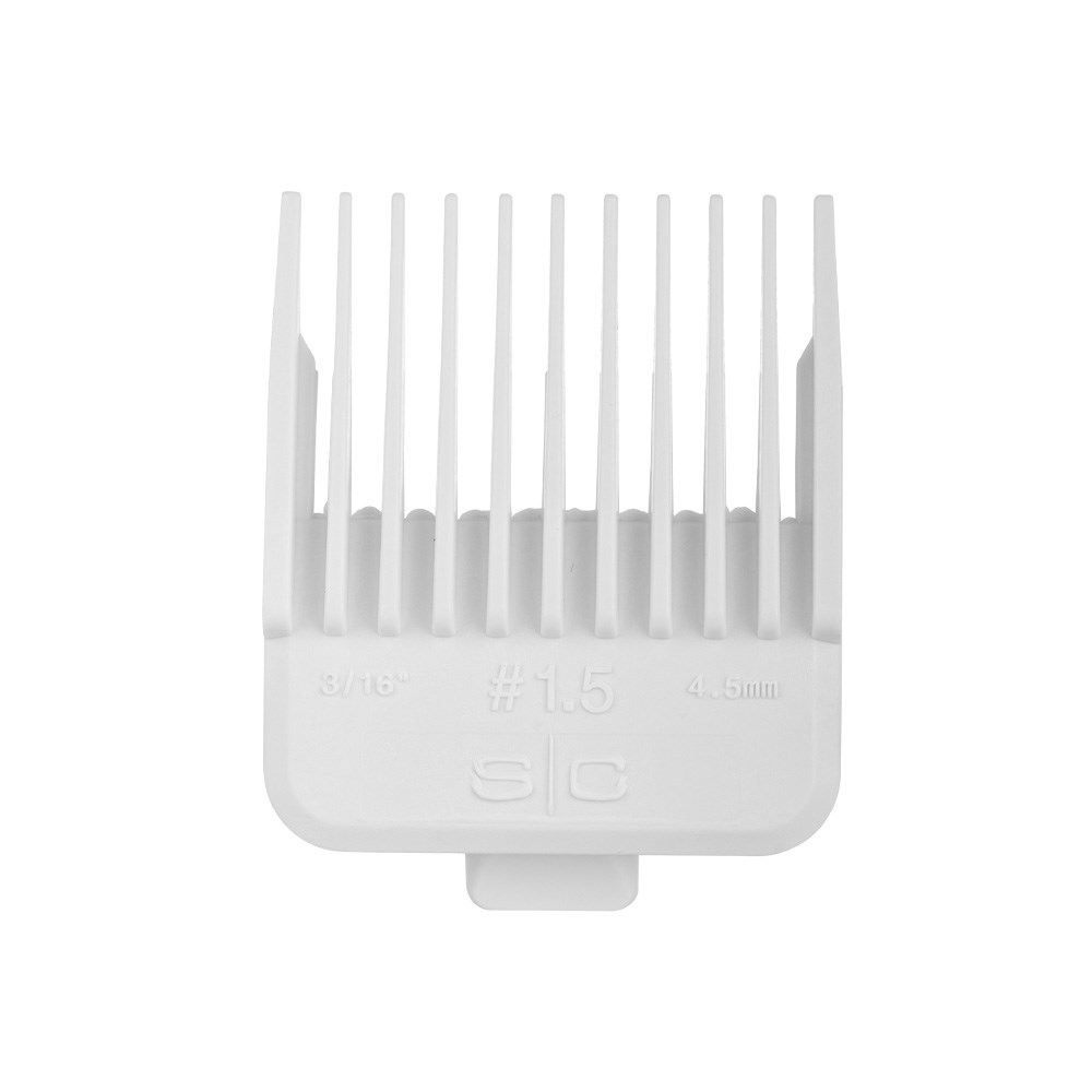 Comb attachment for the StyleCraft by Silver Bullet Instinct X Hair Clipper. This magnetic guard uses strong magnets to securely attach to the clipper blade. Made from durable yet lightweight plastic, the attachment is quick and easy to change in mere seconds, saving you time. No. 1.5 – 4.5mm 3/16”. Used for blending between #1 and #2; helpful in creating smooth transition zones.
