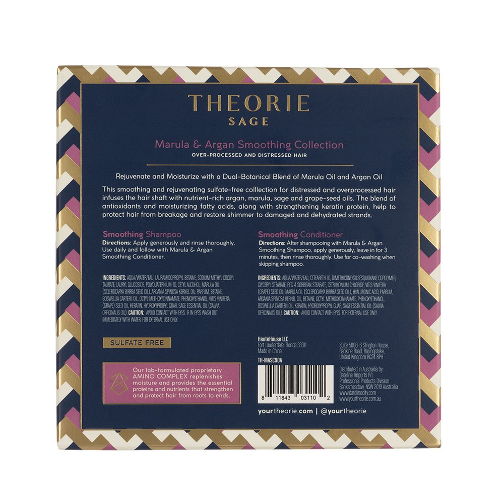 Rejuvenate and moisturise hair with a dual-botanical blend of marula oil and argan oil. Theorie Marula and Argan Travel Set is a smoothing and rejuvenating shampoo and conditioner for distressed and over-processed hair. Hair is infused with nutrient-rich argan, marula, sage and grapeseed oils. The blend of antioxidants and moisturising fatty acids, along with strengthening keratin, protects hair from breakage and restores shine to damaged, dehydrated locks.