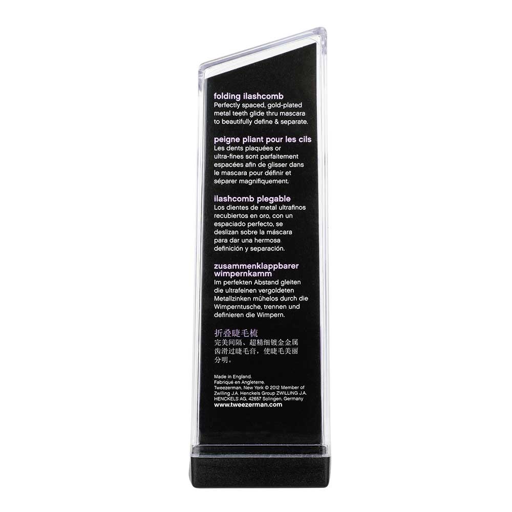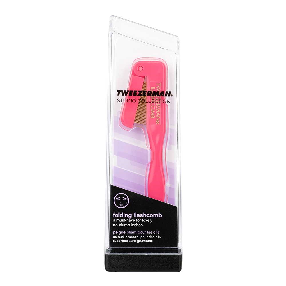 The Tweezerman Folding iLashcomb Pink features perfectly spaced, gold-plated teeth which effortlessly glide through wet mascara for defined, evenly separated, and natural looking lashes. The teeth of the Tweezerman eyelash comb fold compactly into the handle for protection.