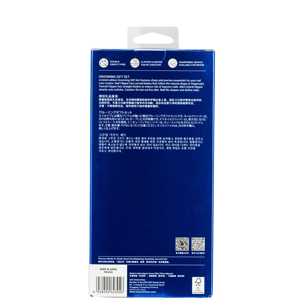 The gift of precision nail trimming and cuticle maintenance! Limited edition Tweezerman Grooming Gift Set includes sharp and precise essentials for your nailcare routine. Nail Clipper features curved blades which follow the natural shape of fingernails. Toenail Clipper features straight blades to reduce the risk of ingrown nails. Mini Cuticle Nipper cleanly cuts your cuticles. Finally, Nail File shapes and defines your beautifully clipped nails. Great for on-the-go touch ups and travel. From Tweezerman, the beauty tool experts.