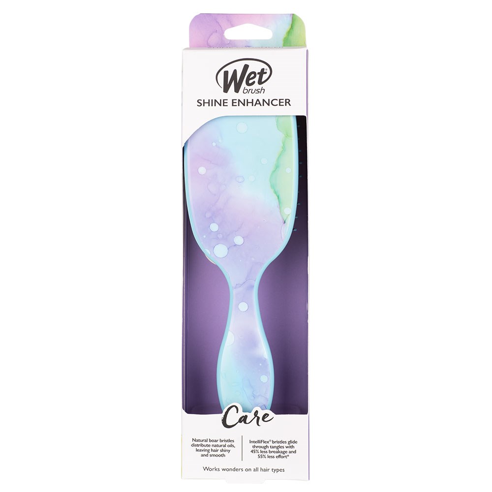 The WetBrush Colour Wash Shine Enhancer Splatter paddle brush offers the best of both worlds. Boar bristles distribute the scalp’s natural oils leaving hair shiny and smooth. Exclusive, ultra-soft IntelliFlex bristles glide through tangles with ease. Effortlessly brushing out knots and detangling wet or dry hair. Works well with dry shampoo to evenly distribute.