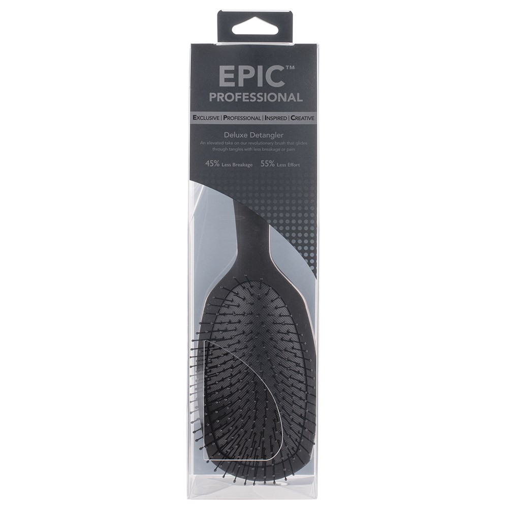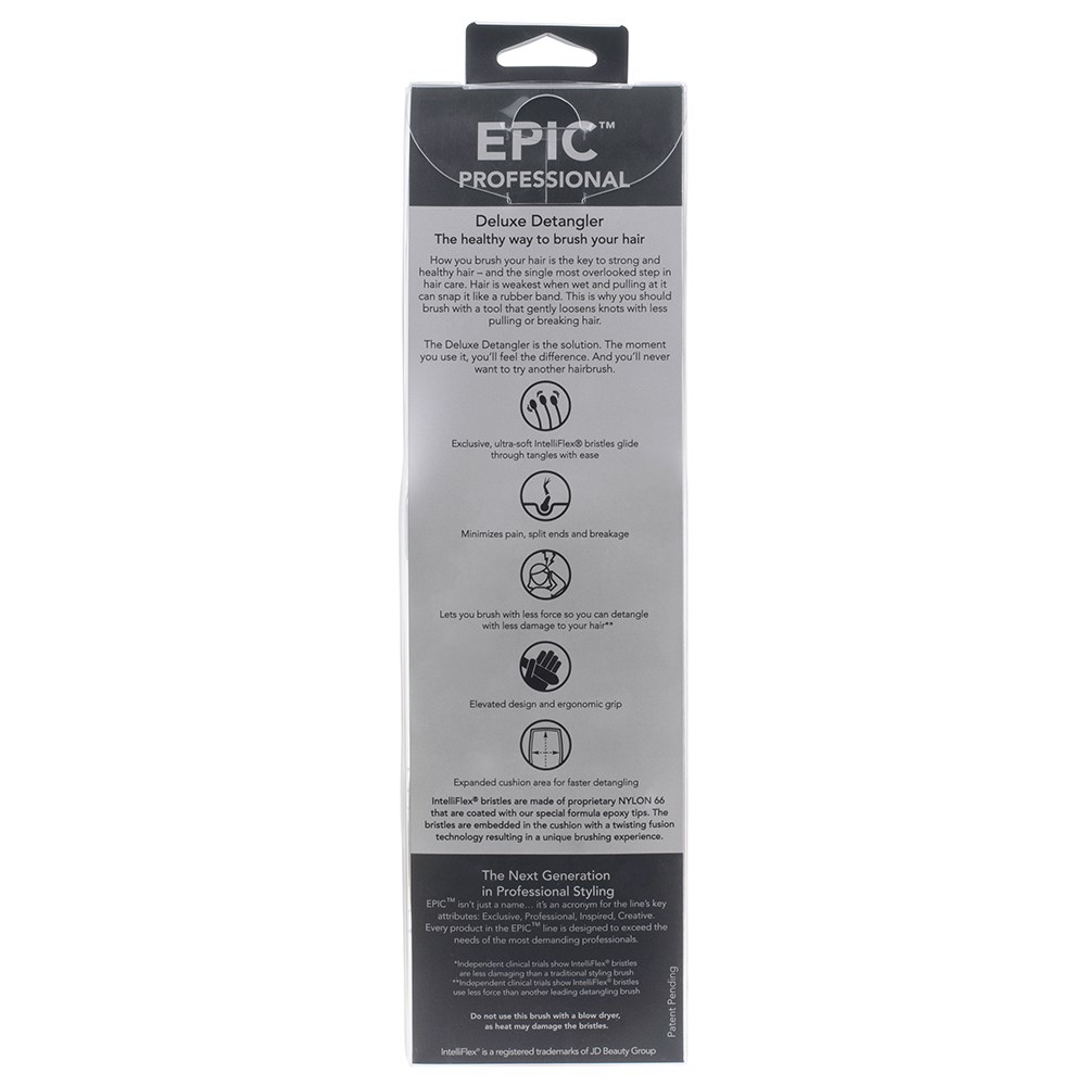 WetBrush Epic Professional Deluxe Detangler Hair Brush is a redesigned detangling brush for maximum styling efficiency. The new brush head has an expanded cushion and bristle area to enable faster styling and detangling with less damage. Longer, stronger handle is ergonomically designed for comfort. The WetBrush Epic Professional line is truly epic in performance and appearance.