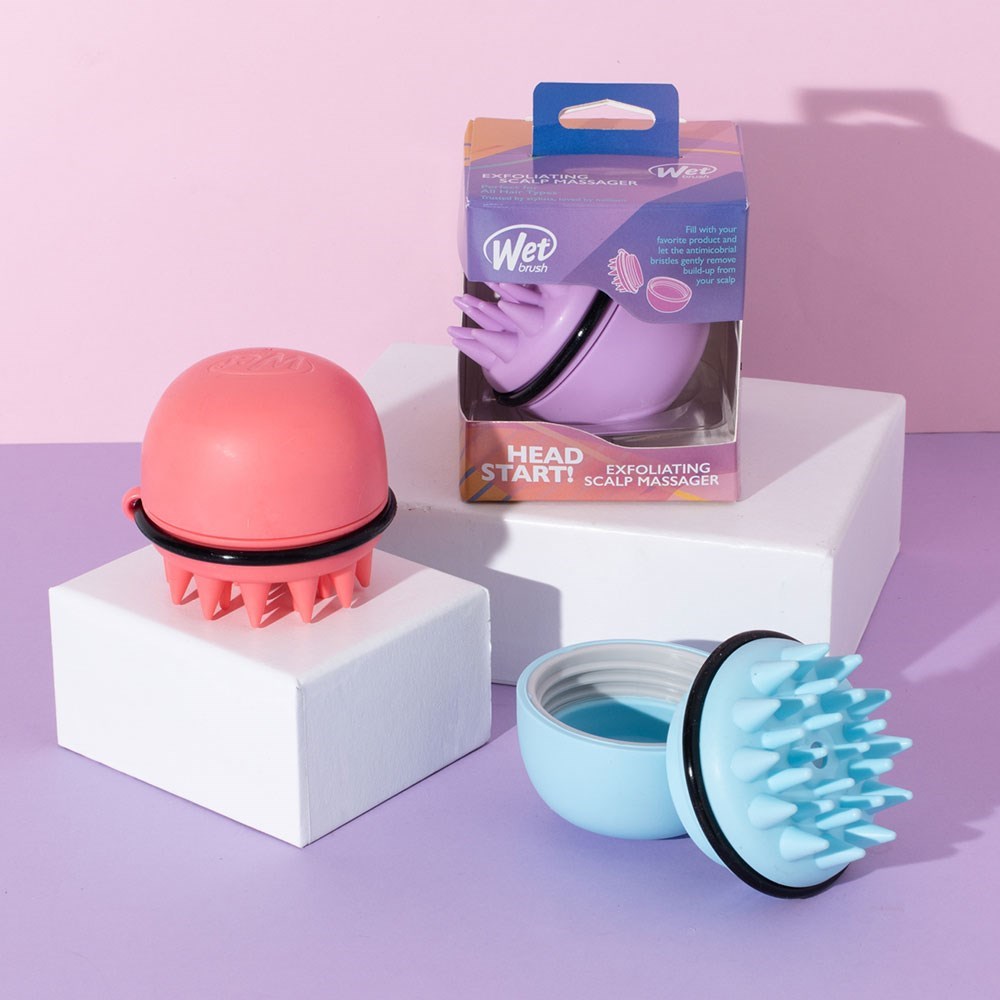 Get a head start on scalp exfoliation with WetBrush Head Start Exfoliating Scalp Massager Blue. Fill this innovative massage brush with your favourite product and let the antimicrobial silicone bristles gently remove build-up from the scalp. Refresh and cleanse without pulling or tugging at hair strands. Improve the condition of the scalp, and consequently hair, by removing flakes and impurities.
