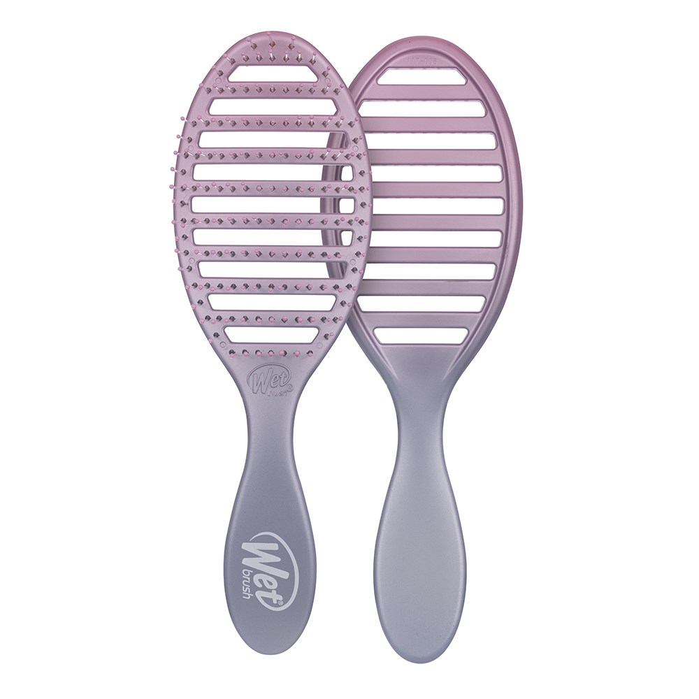 Meet the WetBrush Feel Good Ombre Speed Dry Purple. Dry hair without drying it out. The Speed Dry’s vented design speeds up drying time by allowing moisture to escape faster. Heat-resistant Wet Brush HeatFlex bristles gently detangle while blow-drying. Skip the extra heat and avoid damage, helping to keep hair happier. Brush design contours to scalp for extra comfort. Limited edition, ombre hues sure to make you and your hair feel good!