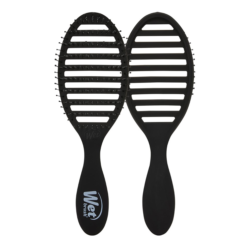 Meet the WetBrush Frost Speed Dry Black. Dry hair without drying it out. The Speed Dry’s vented design speeds up drying time by allowing moisture to escape faster. Heat-resistant HeatFlex bristles gently detangle while blow-drying. Skip the extra heat and avoid damage, helping to keep hair happier. Brush design contours to scalp for extra comfort.