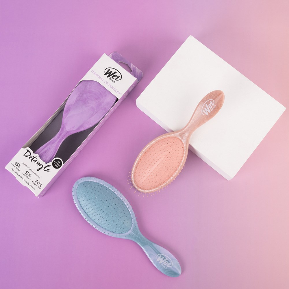 Make waves with the original, award-winning brush which helps hair stay strong! WetBrush Glitter Waves Detangler Coral gently loosens knots on wet or dry hair without pulling or snagging. The moment you use it, you’ll feel the difference and never want to try another detangling brush again. Exclusive, ultra-soft IntelliFlex bristles glide through tangles on all hair types with ease. Minimise pain and protect against split ends and breakage**. Brush with less force so you can detangle with less damage to hair***. Get ready to sparkle with limited edition Wet Brush Glitter Waves.