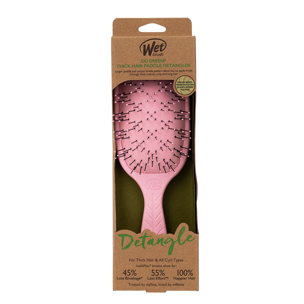 Go green! Meet the WetBrush Go Green Thick Hair Paddle Detangler Pink, the detangling brush which won’t hurt hair or the environment. With a brush body made from 58% plant-based plastic, this brush is designed with a larger paddle and a unique bristle pattern to allow you to easily brush through thick, coarse, curly, and long hair. Exclusive, ultra-soft IntelliFlex bristles glide through wet or dry hair without pain, breakage, or damage. Wet Brush AquaVent design allows water to drain from the brush. Great for spreading hair treatments and masks easily.