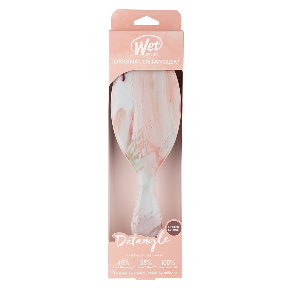 Meet the WetBrush Liquid Fluidity Detangler Hair Brush Rose. World famous exclusive IntelliFlex bristles loosen knots and tangles on wet or dry hair, without pulling or snagging. Letting you brush with less force resulting in less damage. The moment you use a Wet Brush Detangler, you’ll never want to try another detangling hair brush again.
