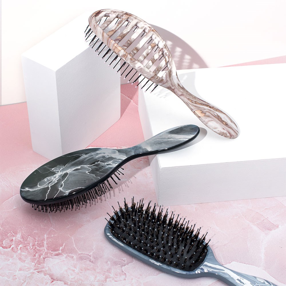 Indulge in luxury with the WetBrush Metallic Marble Detangler in Bronze. World famous exclusive IntelliFlex bristles loosen knots and tangles on wet or dry hair, without pulling or snagging. Letting you brush with less force resulting in less damage. The moment you use a WetBrush Detangler, you’ll never want to try another detangling hair brush again.