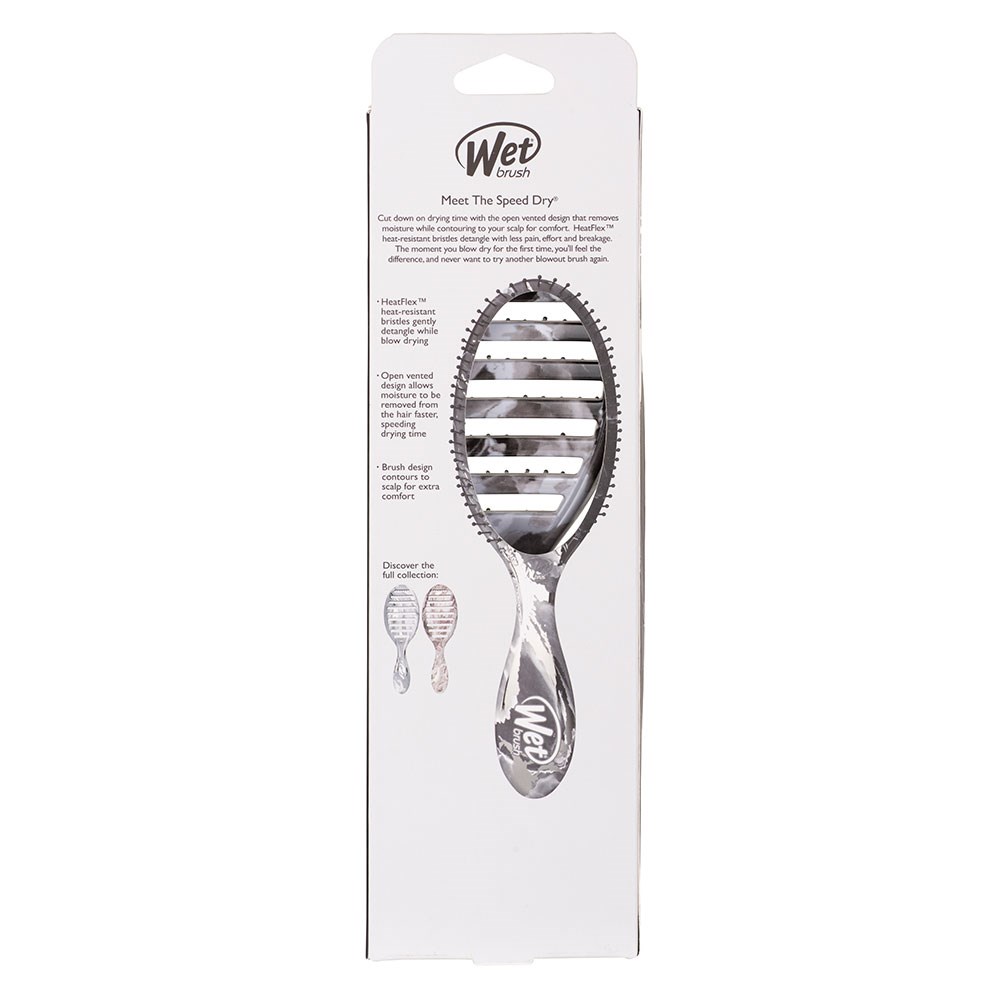 The WetBrush Metallic Marble Speed Dry in Onyx speeds up drying time by allowing moisture to escape faster, and its heat-resistant bristles gently detangle whilst you blow-dry. So you can skip the extra heat and avoid damage, keeping your hair healthy and happy. Less drying time equals happier Hair!