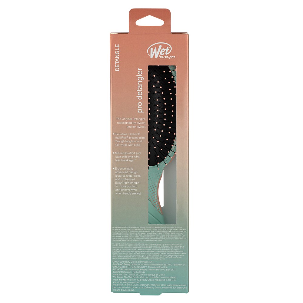 Dazzling detangling! WetBrush Pro Dazzling Dots Detangler Mint Green features gorgeous, limited edition dot patterns. This is the world famous, award-winning Wet Brush Original Detangler redesigned by stylists for stylists. Revolutionary IntelliFlex bristles diffuse knots on all hair types, wet or dry, gliding through tangles with less effort, less pain and over 45% less breakage**. Ergonomically advanced with finger rests and rubberised EasyGrip handle for more comfort and control.