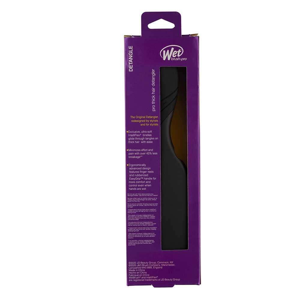 Meet the WetBrush Pro Thick Hair Detangler Hair Brush. World famous exclusive IntelliFlex bristles loosen knots and tangles on wet or dry hair, without pulling or snagging. Letting you brush with less force resulting in less damage. This detangler is designed for thick, curly and coarse hair. Ergonomically advanced with rubberised Easy Grip Handle.