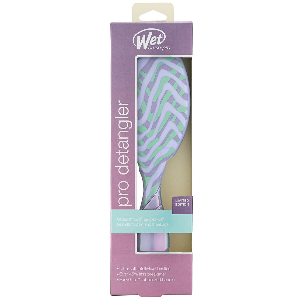 When detangling becomes a sweet delight! WetBrush Pro Vintage Sweets Detangler Purple features a limited edition, sweetly whirling design in pastel iridescence. This is the world famous, award-winning Original Detangler redesigned by stylists for stylists. Revolutionary IntelliFlex bristles diffuse knots on all hair types, wet or dry, gliding through tangles with less effort, less pain and over 45% less breakage. Ergonomically advanced with finger rests and rubberised EasyGrip handle for more comfort and control.