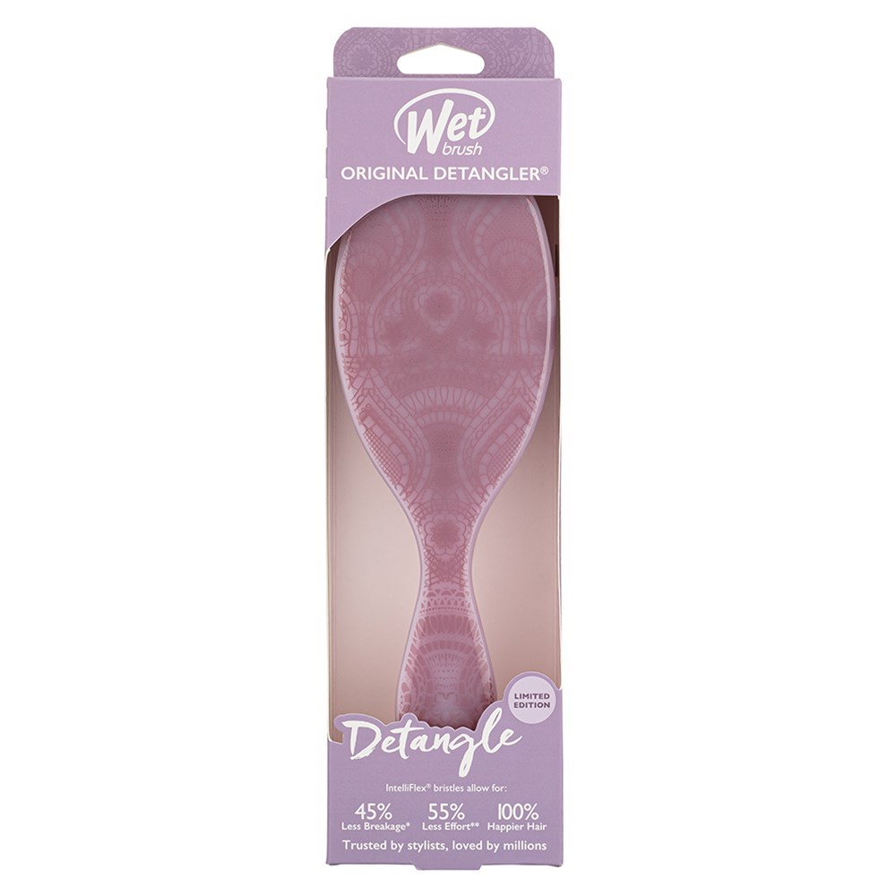 The original, award-winning brush which helps hair stay strong! WetBrush Reclaimed Romance Detangler Purple gently loosens knots on wet or dry hair without pulling or snagging. The moment you use it, you’ll feel the difference and never want to try another detangling brush again. Exclusive, ultra-soft IntelliFlex bristles glide through tangles on all hair types with ease. Minimise pain and protect against split ends and breakage. Brush with less force so you can detangle with less damage to hair. Fall in love with detangling with Wet Brush!