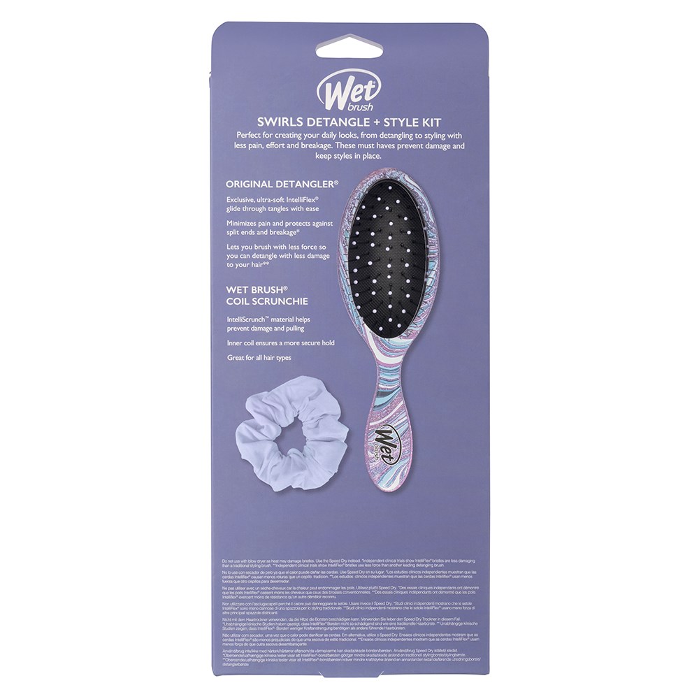 Detangle and style with less pain, effort and breakage. This limited edition WetBrush Swirl Detangle and Style Kit includes the Original Detangler Hair Brush and Coil Scrunchie. Brush with Original Detangler for over 45% less breakage and style with the cute, comfy, no-pulling, secure hold scrunchie. Perfect for creating daily looks, this ultra-fun detangling kit is designed to prevent damage while letting you live tangle-free. Detangling with a dose of Wet Brush.